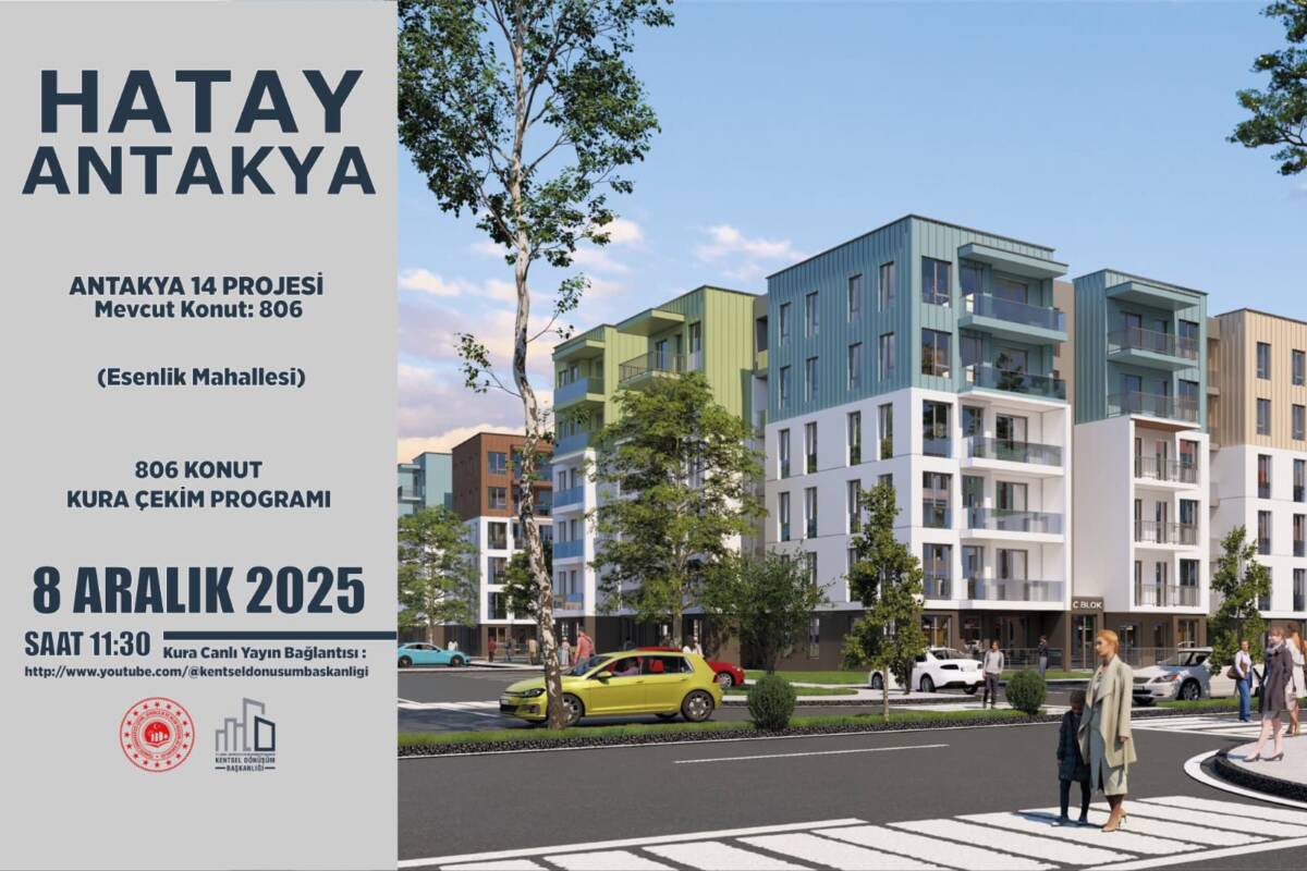 Hatay’da kentsel dönüşüm kapsamında tamamlanan iki büyük projede kura çekimi 8 Aralık 2025 Pazartesi günü gerçekleştirilecek. Defne ve Antakya ilçelerinde inşa edilen toplam 1.431 konutun hak sahipleri noter huzurunda belirlenecek.