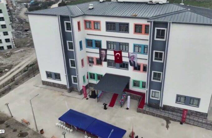 Hatay’da, 6 Şubat 2023 depremlerinin ardından yapımı tamamlanan 220’nci okul,