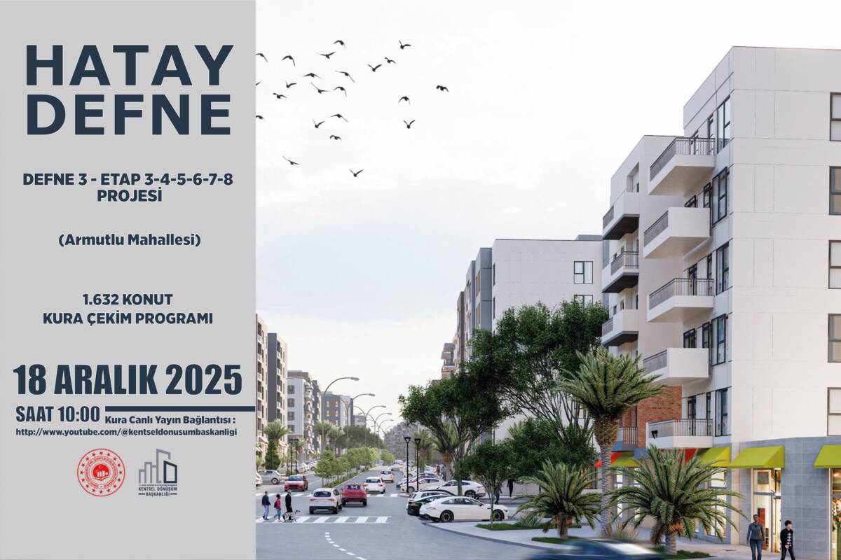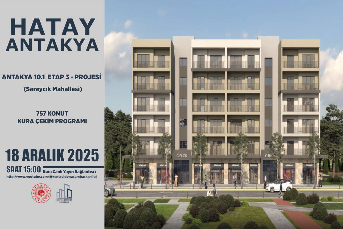 Hatay’da yapımı tamamlanan deprem konutları için 18 Aralık 2025 Perşembe günü kura çekimleri gerçekleştirilecek. Kura çekimleri, noter huzurunda yapılacak ve Kentsel Dönüşüm Başkanlığı’nın YouTube kanalından canlı olarak yayınlanacak.