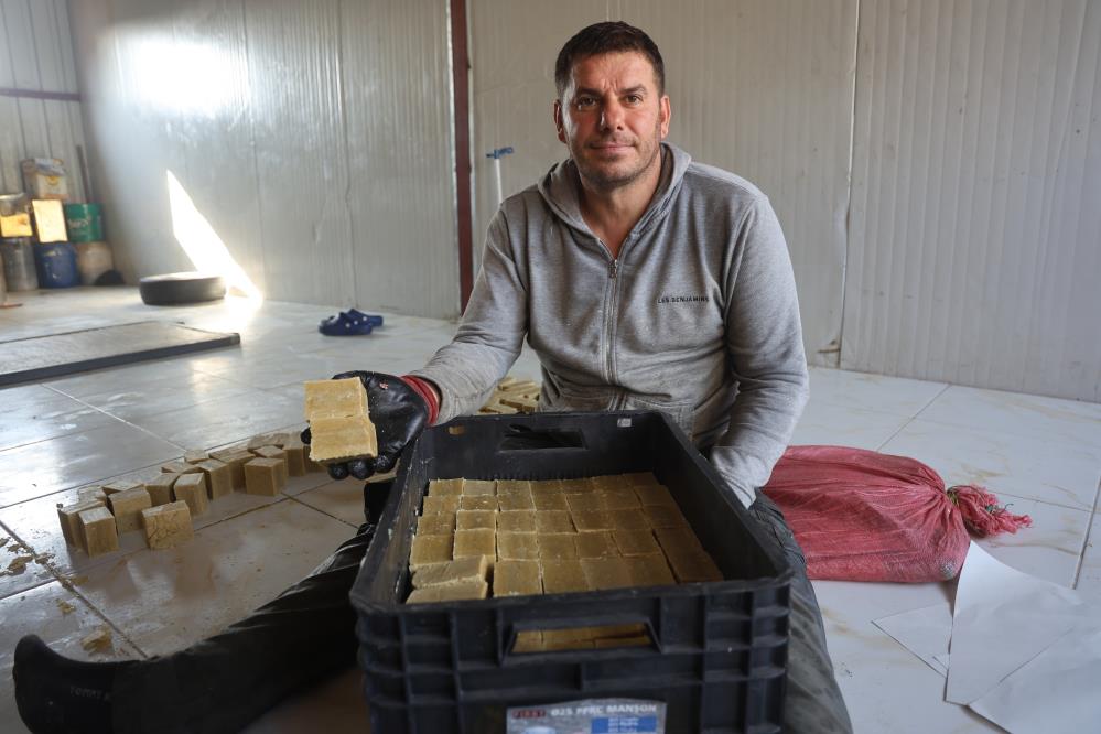 Kara kazanında 30 yıldır sabun üretimi yapan Kaya, üretim sürecini şu sözlerle anlattı: “Sabunculuk, babadan kalma bir meslek. 1980 yılında babam bu işi yapıyordu, ben de 40 yıldır devam ediyorum. Bu mevsimde insanlar zeytin ve defne yağlarını bana getiriyor. Önce yağları pişiriyoruz, ardından kostik malzemesini ekleyip 40 dakika boyunca sürekli karıştırıyoruz. Daha sonra sabunu kalıba döküp bir saat içinde kesiyoruz ve sabun haline geliyor.”