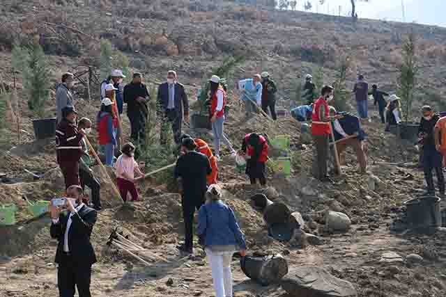 Vali Rahmi Doğan, ilimizde 3 ayrı orman yangını sonucu yanan ağaç sayısının birkaç katı fazlasının aynı bölgelere ekileceğini söyledi. Orman Bölge Müdürü Mustafa Koç, birkaç kat fazla olan sayıyı da 4 milyon 500 bin ağaç şeklinde açıkladı.