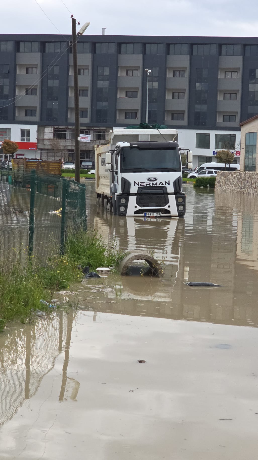 Vatandaşların aktardığına göre yaklaşık iki aydır aynı noktada yaşanan tıkanıklık, her yağmurda daha da büyüyerek çevreyi sular altında bırakıyor. Rögarların taşmasıyla birlikte yol adeta nehre dönerken, su hem iş yerlerine hem de konteyner kente kadar ulaştı. Görüntülerde araçların ilerleyemediği, bazı sürücülerin geri dönmek zorunda kaldığı, hatta bir tırın suya gömüldüğü dikkat çekti.