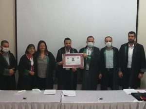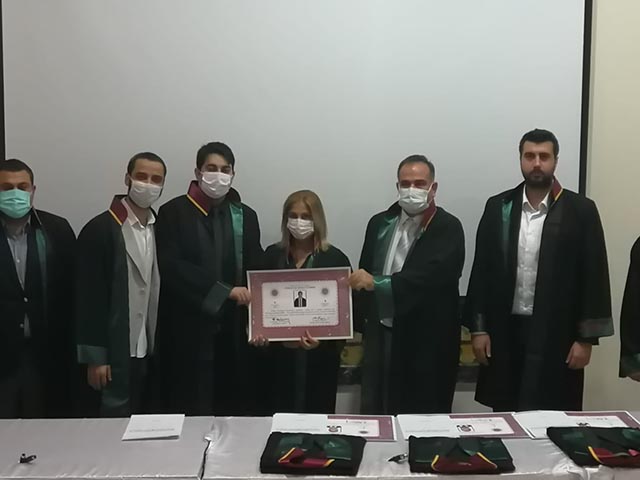 Ahmet Solak’a cübbesini Baro Başkanı Av. Cihat Açıkalın, Fatih Yapar’a cübbesini Av. Cemal Gelincik ve Av. İlhan Karaköse, Abdullah Ay cübbesini Av. Ahmet Atıç ve Av. Cuma Yurtal, Onur Temiz’e cübbesini Av. Nesrin Biçer, Mehmet Sinoplu’ya cübbesini Baro Başkanı Av. Cihat Açıkalın ve Av. Bedia Öztürk, İlker Orhan Terzi’ye cübbesini Av. Bedia Öztürk, Av. Meleke Yapar, Av. Serkan Sahillioğlu ve Av. Acip Güzel giydirdi.