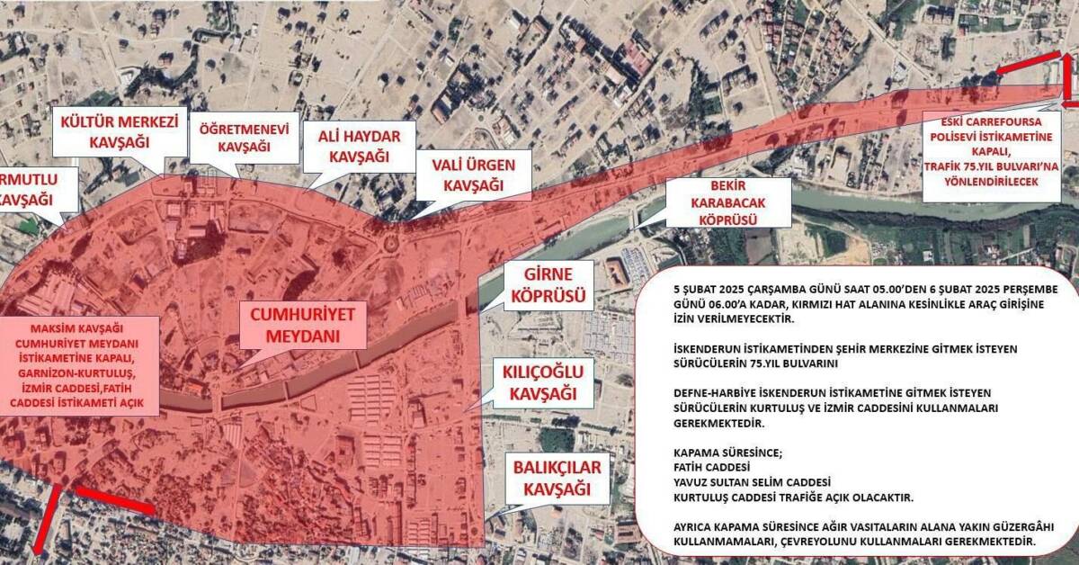Hatay Valiliği, 6 Şubat depreminin 2.yıldönümü anma etkinlikleri kapsamında şehir içi trafiğin düzeni açısından bazı yolları trafiğe kapattı.