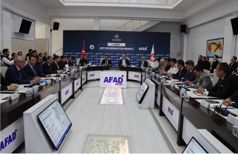 Karaloğlu, saha ziyaretlerinin ardından AFAD Koordinasyon Merkezi’nde gerçekleşen basına kapalı toplantıya başkanlık etti. Toplantıya Hatay Valisi Mustafa Masatlı ile AFAD Başkan Yardımcısı Önder Bozkurt da katıldı. Toplantıda ilin genel durumu ve saha çalışmaları değerlendirildi.