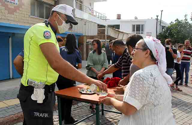 Polis, dua için ziyarete gelen vatandaşlara şeker, kolonya ve karanfil dağıttı …