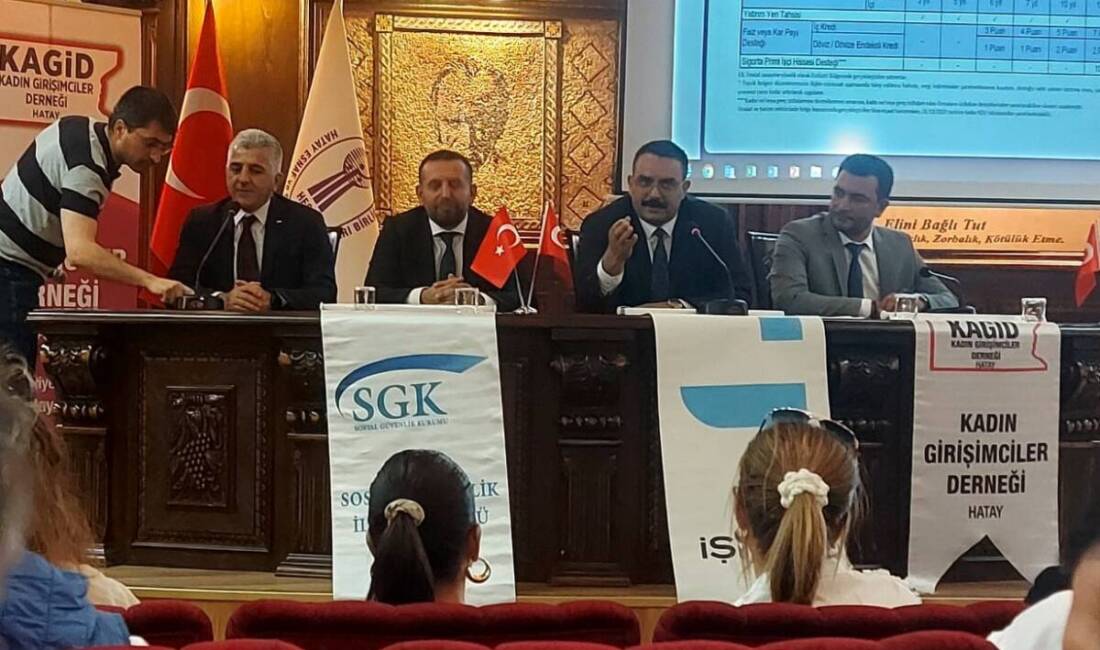 Toplantıya Hatay İl Sanayi ve Teknoloji Müdürü Rıza Evrim, İŞKUR İl Müdürü Abdullah Kılınç, KOSGEB İl Müdürü Mustafa Öztaş, SGK İl Müdürü Hamit Bal, SGK İl Müdür Yardımcısı Hatice Açıkgöz ve konuşmacı olarak katıldı. Katılımcılara kadın girişimcilere yönelik mevcut destek programları, hibeler, teşvikler ve yeni uygulamalar hakkında kapsamlı bilgi verildi.