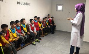“Göztepe Antakya Futbol Okulu’nda, Hatay’da ilk ve tek olarak; Çocuklarımıza sadece futbol değil, diyetisyen gözetiminde doğru beslenme eğitimleri verilecek. Hatay’da ilk ve tek olarak; Çocuklarımıza ilk yardım personeliyle, Allah korusun, sakatlıklarda anında müdahale edilecek. Hatay’da ilk ve tek olarak;