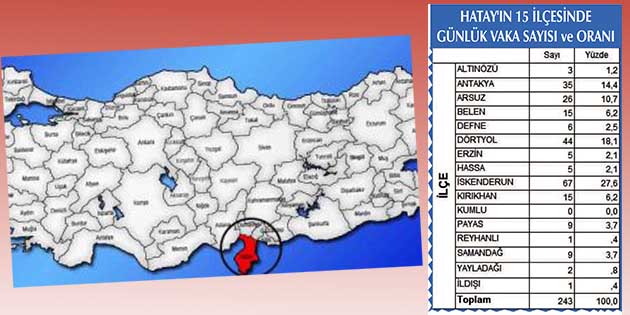 Sağlık Bakanlığı verilerine göre, Hatay’da günde ortalama 243 vaka, haftada 1700 vaka yaşanıyor.