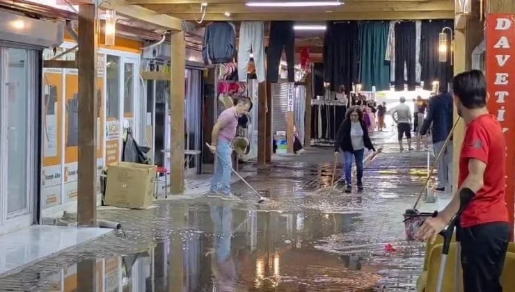 İskenderun şehir merkezinde ise yağışlar sırasında depremzede esnafın bulunduğu çarşıda bazı çatılardan sızan sular nedeniyle su tahliye çalışmaları yapıldı. Esnaf, yağmur sularını süpürgelerle tahliye etmeye çalıştı.