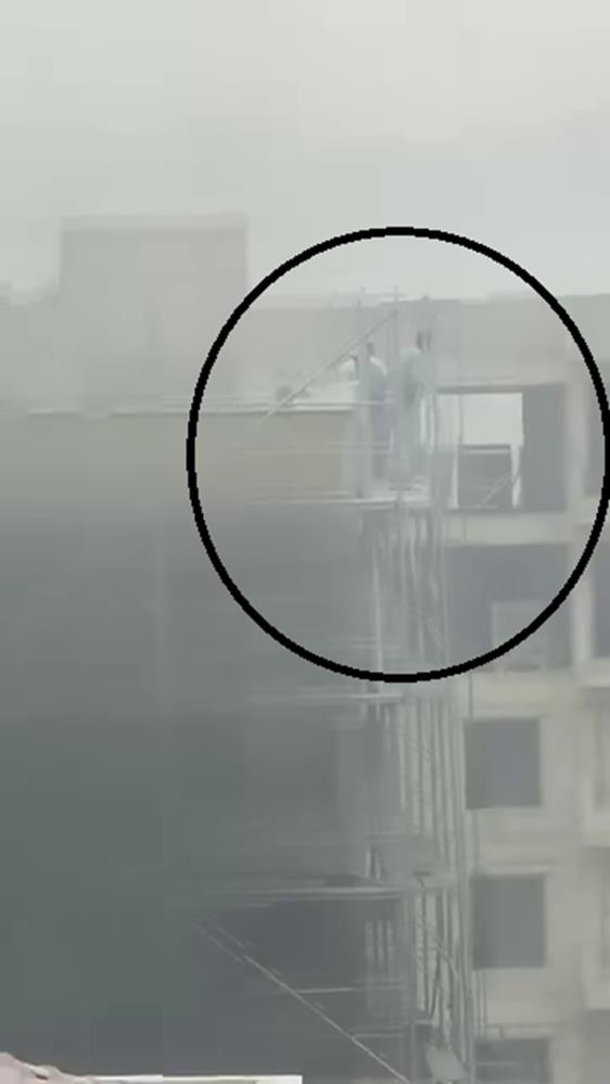 Yangın çıktığı sırada binanın dış cephesinde iskele üzerinde çalışan iki işçi, alevlerin yükselmesiyle neye uğradığını şaşırdı. Yükselen duman ve alevlerden kaçamayan işçiler, iskelede en üst noktaya çıkarak kendilerini korumaya çalıştı. O anlar, olay yerinde bulunan bir vatandaş tarafından cep telefonu kamerasıyla görüntülendi.