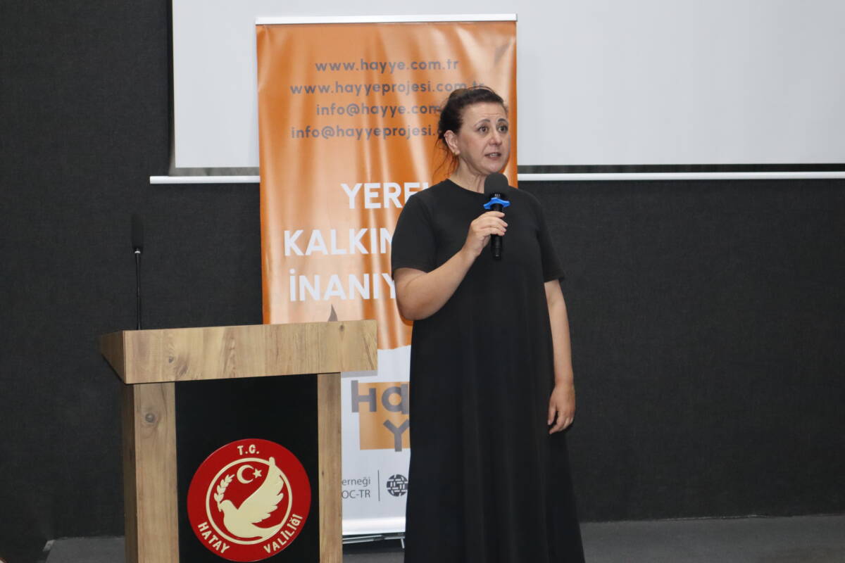 Açılış konuşmasını gerçekleştiren Sürdürülebilirlik İletişim Uzmanı ve gazeteci Yasemin Mıstıkoğlu, Hatay’daki kadın gücünü vurguladı: