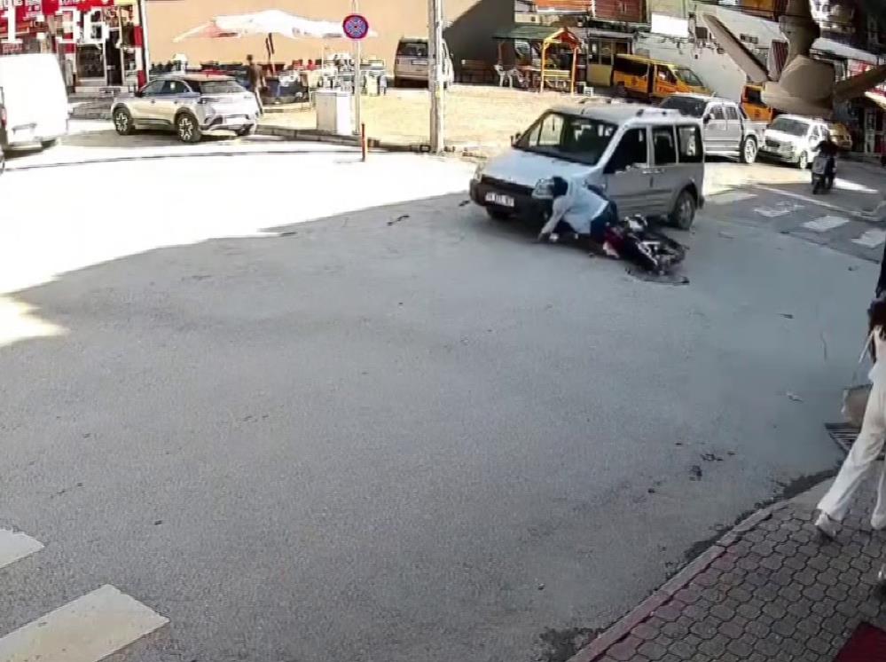 Olay sırasında motosiklet sürücüsü, direksiyon hakimiyetini kaybederek cadde kesişiminde hafif ticari araca çarptı. Çarpmanın etkisiyle kafasını araca çarpan sürücü, şans eseri kask taktığı için ağır bir yaralanma yaşamadan kazayı atlattı.