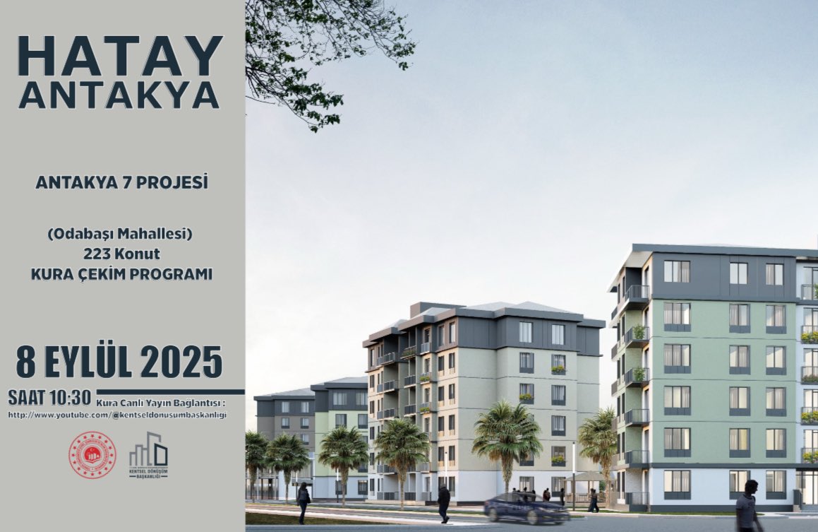 Hatay’da kentsel dönüşüm projeleri kapsamında tamamlanan konutların hak sahipleri, 8 Eylül 2025 Pazartesi günü yapılacak kura çekimi ile belirlenecek.