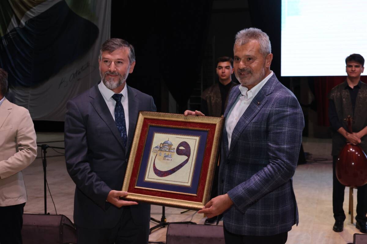 Âlemlere Rahmet Hz. Muhammed’in (s.a.v.) doğumunun 1500. yılı temasıyla idrak edilen program sonunda Vali Masatlı ve Başkan Öntürk, konuklara hediye takdiminde bulundu.