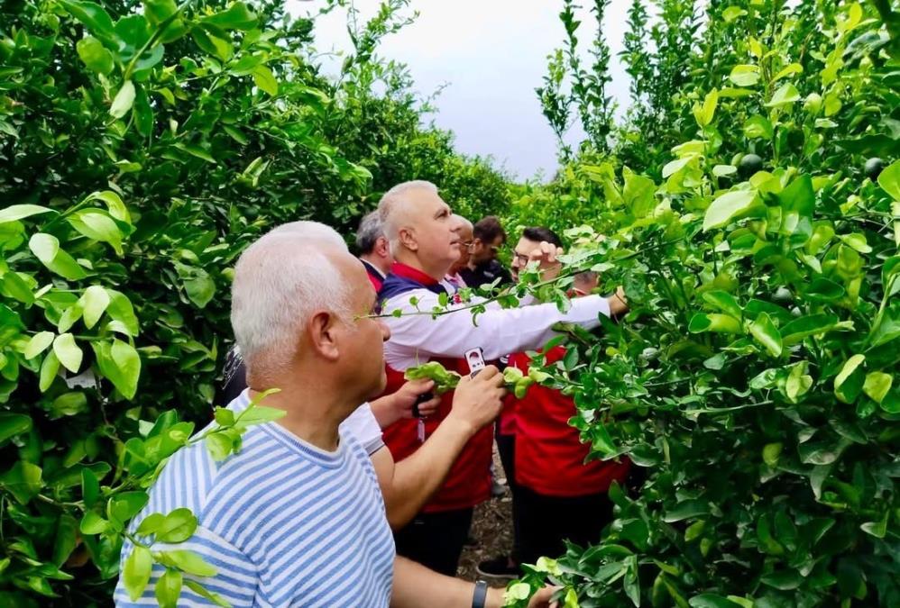 Narenciye bahçelerinde yürütülen incelemelerde, biyolojik mücadele yöntemleri ve mevcut durum yerinde değerlendirildi. Özellikle yaz aylarında artış gösteren Akdeniz meyve sineği ve benzeri zararlıların meyve kalitesine etkisi ele alınırken, sürdürülebilir üretim için alınması gereken önlemler masaya yatırıldı.