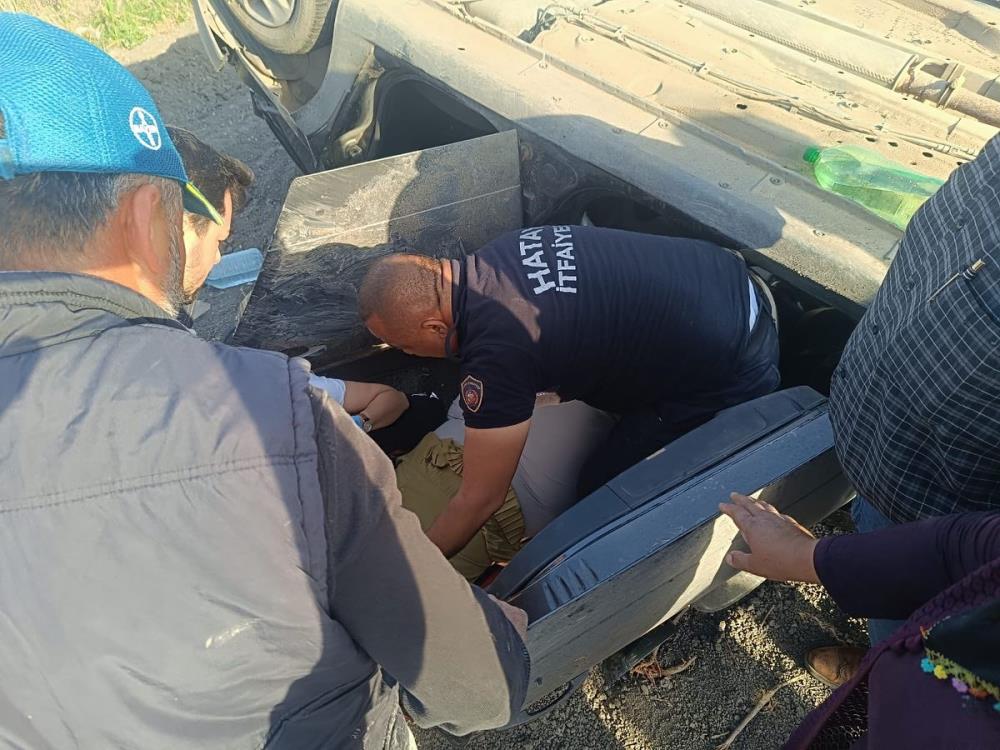 Araçta bulunan 3 kişi kazayla birlikte otomobilin içinde sıkıştı. Hatay Büyükşehir Belediyesi İtfaiye ekipleri, özel kurtarma ekipmanlarıyla yaralıları sıkıştıkları yerden çıkararak sağlık ekiplerine teslim etti.