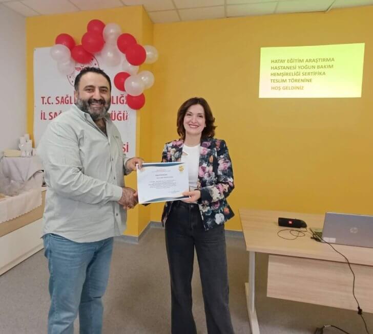 Hatay Eğitim ve Araştırma Hastanesi bünyesinde düzenlenen Yoğun Bakım Hemşireliği Sertifika Eğitimi, tamamlanarak sertifika töreniyle taçlandırıldı. Program kapsamında sağlık çalışanlarının mesleki bilgi ve becerilerinin geliştirilmesi hedeflendi.