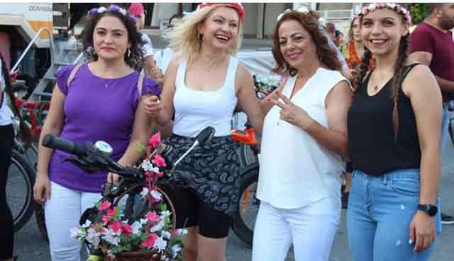 Pazar günü saat 15.00’te, şık giyimli ve makyajlı Antakyalı ve Defneli kadınlar, topuklu ayakkabılarıyla bisiklet sürdü, pedal çevirdi. Antakya ve Defne Caddeleri, ilk kez egzoz değil, parfüm koktu. -Selvi Günay-