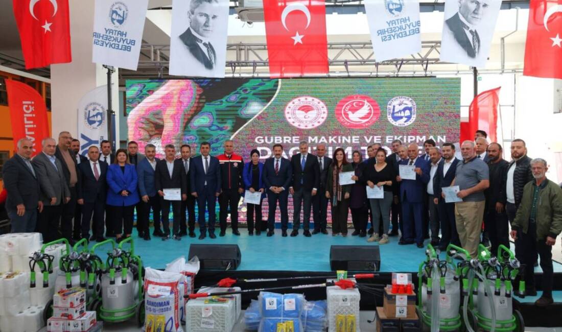 Hatay Büyükşehir Belediyesi (HBB), “Hatay Ayağa Kalkıyor” sloganıyla tarım ve hayvancılığa destek olacak projeleri hayata geçiriyor. Bu kapsamda Hatay Valiliği, Hatay Büyükşehir Belediyesi ve Tarım ve Orman İl Müdürlüğü iş birliğiyle düzenlenen Gübre, Zeytin Hasat Seti ve Süt Sağım Makinesi Dağıtım Projesi’nin lansmanı gerçekleştirildi.