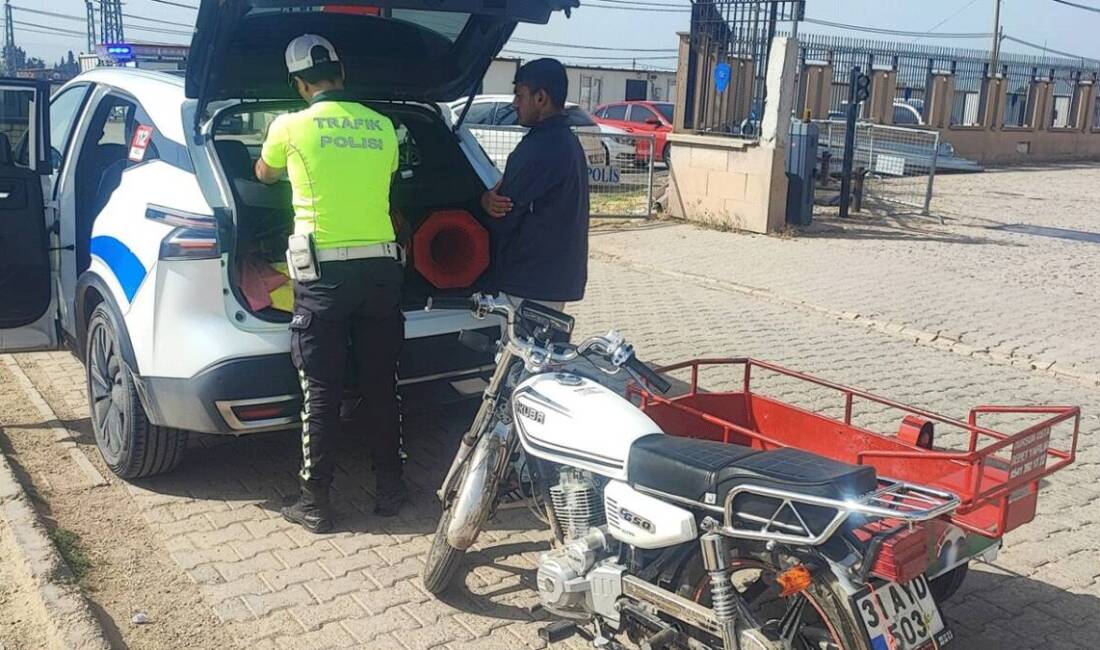 Hatay’da, sepetli motosikletin üzerine yatarak hem kendi hayatını hem de yanındaki iki kişinin can güvenliğini tehlikeye atan 20 yaşındaki sürücü E.B.’ye toplam 24 bin 997 lira para cezası kesildi.