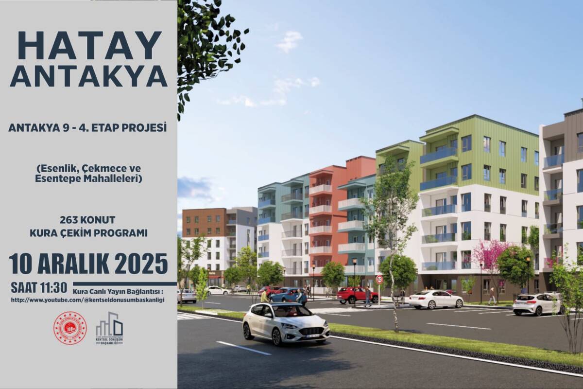 Saat 11.30’da Antakya ilçesinde hayata geçirilen Antakya 9 – 4. Etap Projesi kapsamında Esenlik, Çekmece ve Esentepe mahallelerinde yapımı tamamlanan 263 konutun kura çekimi gerçekleştirilecek.