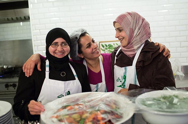 konuştuk. Taşın altına elini koyacak olan 17 kadını tespit ettik ve ‘bu kadınlar ne yapabilir’ diye düşünmeye başladık. Henüz mutfak fikri yoktu. Hepsi farklı bölgelerin insanıydı. Fark ettik ki, hepsinin yemek kültürü de farklı. Ortak bir iş olsun diye, başlangıç olarak, ilkin reçelden başladık. Herkesin bildiği bir şeydi. Buradan bir Suriyeli kadının fikriydi, bulunan ve kullanılan isim de. Böylelikle, ‘Kadın kadına mülteci mutfağı’ fikri çıktı. Ama daha ortada mutfak yoktu.”