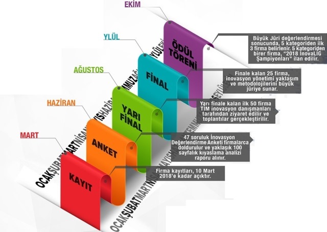 İnovaLİG 2018’in ön kayıtları 10 Mart’a kadar sürecek. Sürecin sonunda büyük jüri değerlendirmesi gerçekleşecek ve 5 kategoride ilk 3 firma belirlenecek.  -Tamer Yazar-