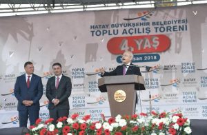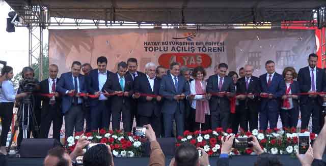 Konuşmaların ardından, Hatay Büyükşehir Belediyesinin yapmış olduğu hizmetlerin açılışı yapılmak üzere kurdele kesildi. -Mehmet ÖZGÜN –
