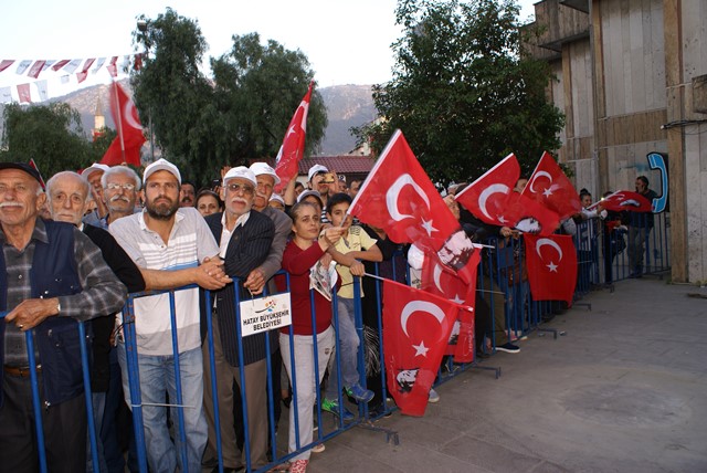 “Hatay’da huzur niçin vardır? Ortadoğu’da neden kan gövdeyi götürüyor. Eğer sen Hatay’ı anlarsan Ortadoğu’yu anlarsın. Hatay’ın politikası budur. Hatay’ın insanı sevgi doludur, yüreği sevgi doludur. Kin yoktur, öfke yoktur, intikam duygusu yoktur, sevgi vardır, barış vardır, kardeşlik vardır, birlikte yaşamak vardır. Ama biz Hatay’ı çok iyi biliyoruz. İlk Hatay’a gelişim 1971 yılıdır. Genç bir devlet memuruyken buraya gelmiştim Hatay’a ve ilk künefeyi 1971 yılında Hatay’da yedim. Hatay’ı unutmam, Hatay o zamandan beri sadece benim bildiğim Hatay değil, bütün dünyanın bildiği Hatay giderek büyüdü, giderek gelişti.”