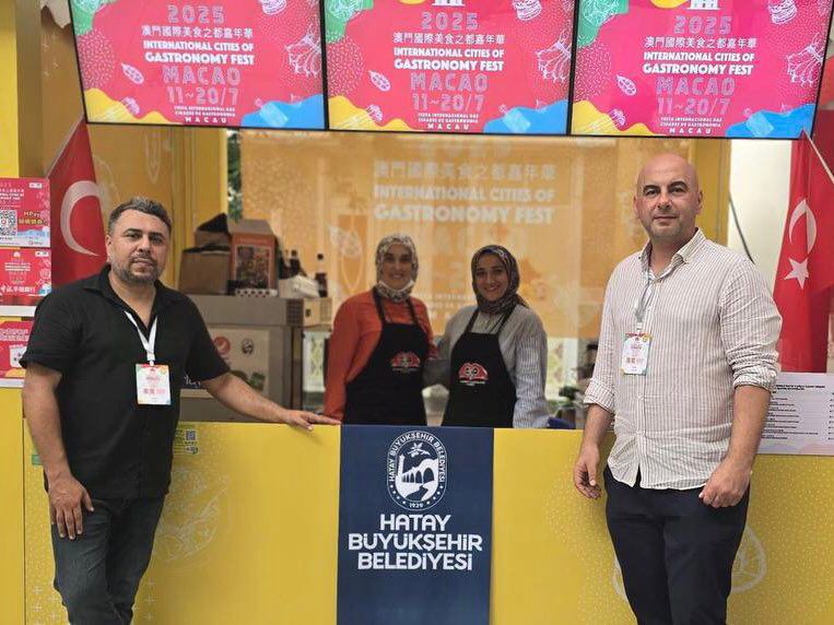 Hatay Büyükşehir Belediyesi, Çin’in Macao Özel İdare Bölgesi’nde 11 Temmuz’da başlayan “2025 Macao Gastronomi Festivali”nde kentin zengin mutfak kültürünü tanıttı. Hatay’ın UNESCO Yaratıcı Şehirler Ağı’na dahil olması dolayısıyla davet edildiği festivalde, yerel gastronomi değerleri dünya sahnesine taşındı.