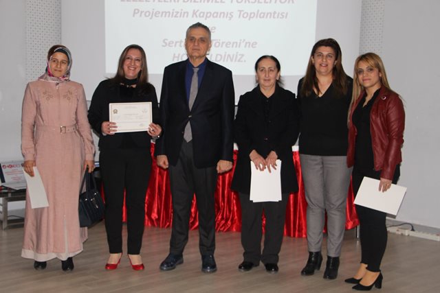 Proje Ortağı ve Sorumlusu ATSO’nun Başkanı Hikmet Çinçin, Proje kapanış toplantısı ve sertifika törenine katılan tüm davetli ile kursiyerlere teşekkür etti. -Cemil Yıldız-