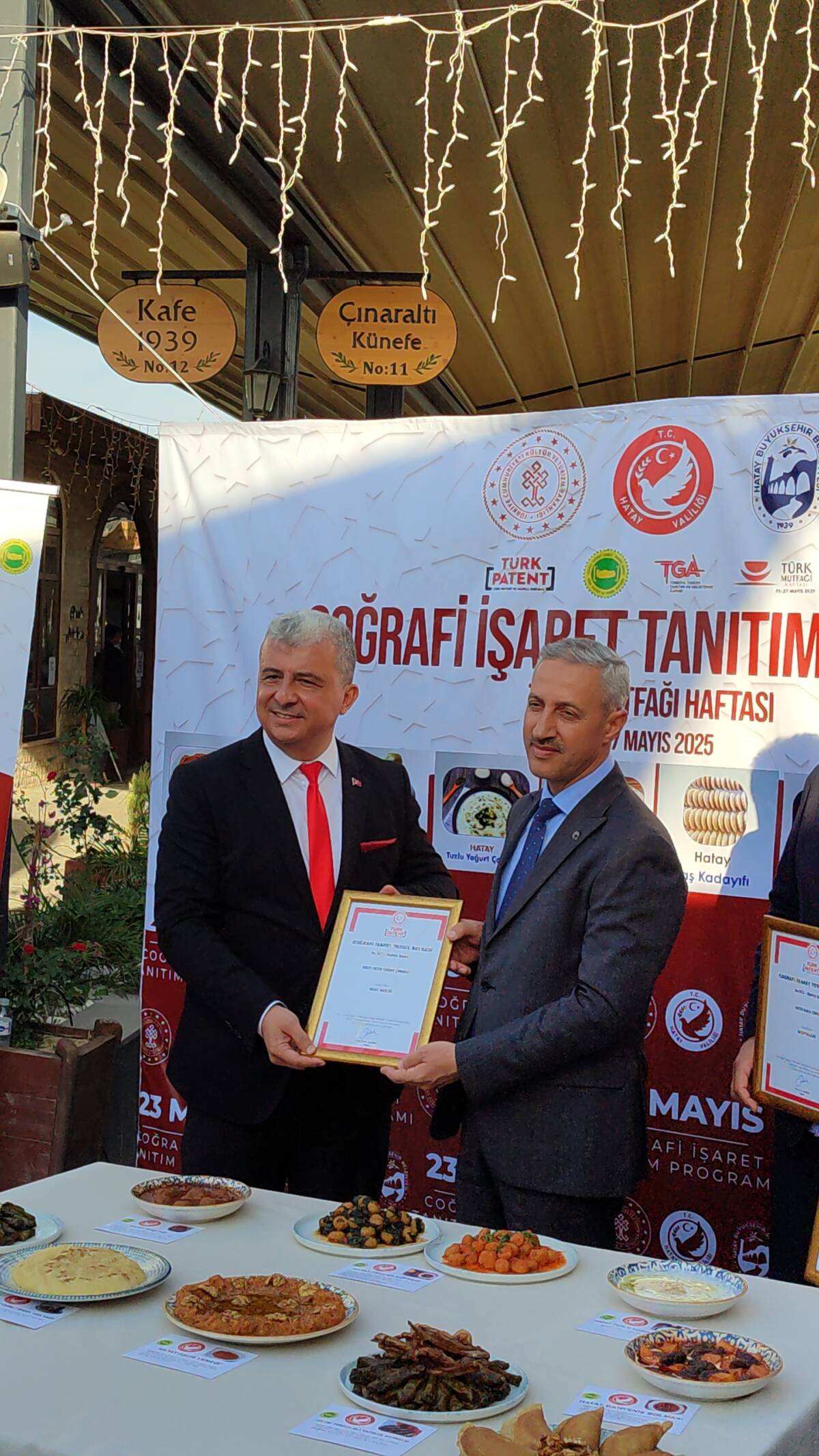 Programda konuşan Vali Mustafa Masatlı, coğrafi işaretlerin bir ürün tescilinden çok daha fazlası olduğunun altını çizdi. “Bu, kültürel mirasımızı koruma, bölgesel değerleri sahiplenme meselesidir. Hatay olarak son iki yılda tescilli ürün sayımızı 25’ten 50’ye çıkardık. Halen değerlendirme aşamasında olan 80 başvurumuz daha var. Hepsi tamamlandığında 130 coğrafi işaretli ürünle Türkiye’nin en zengin gastronomi kentlerinden biri olacağız,” dedi.