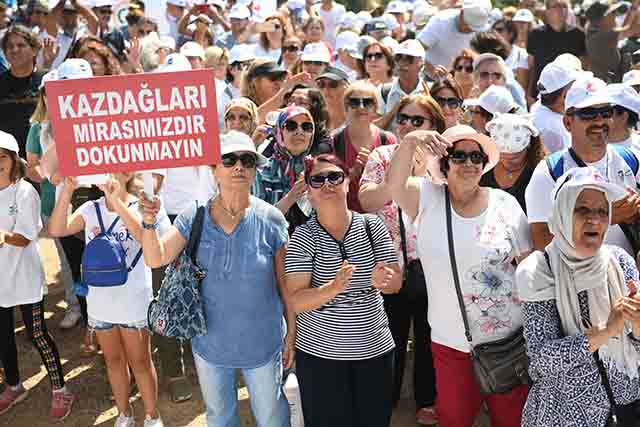 Çanakkale-Kirazlı’daki altın madeni projesinin bölgedeki ormanları yok edeceğini ve doğal kaynakları kirleteceğini söyleyen binlerce kişi protesto gösterisi düzenlerken, Hatay Barosu Başkanı Av. Ekrem Dönmez, “Su da