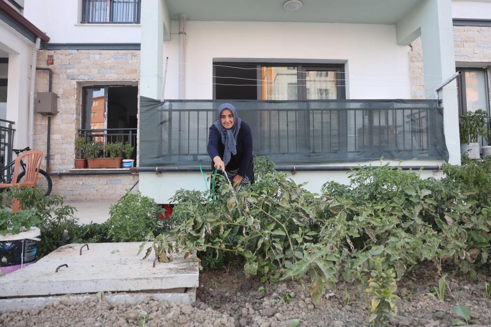 Hataylı depremzede yeni evini bahçeye çevirdi