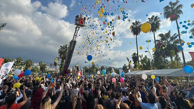 Büyükşehir Belediyesi’ne ait itfaiye aracının merdivenine çıkan Tamer Talha, katılımcılarla birlikte rengarenk balonları gökyüzüne bırakarak kanseri yenmenin sevincini yaşadı. Etkinlikte çocuklar için yüz boyama etkinliği de düzenlendi.