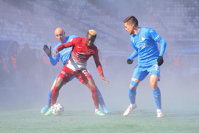 Bordo-Beyazlılar, -10 derece soğukta karşılaştığı BŞB Erzurumspor önünde, galibiyeti; Katranis, Diouf ve Boupendza’nın golleriyle elde ederken, ev sahibi ekibin tek golü 90+3’te Oltan ile geldi.