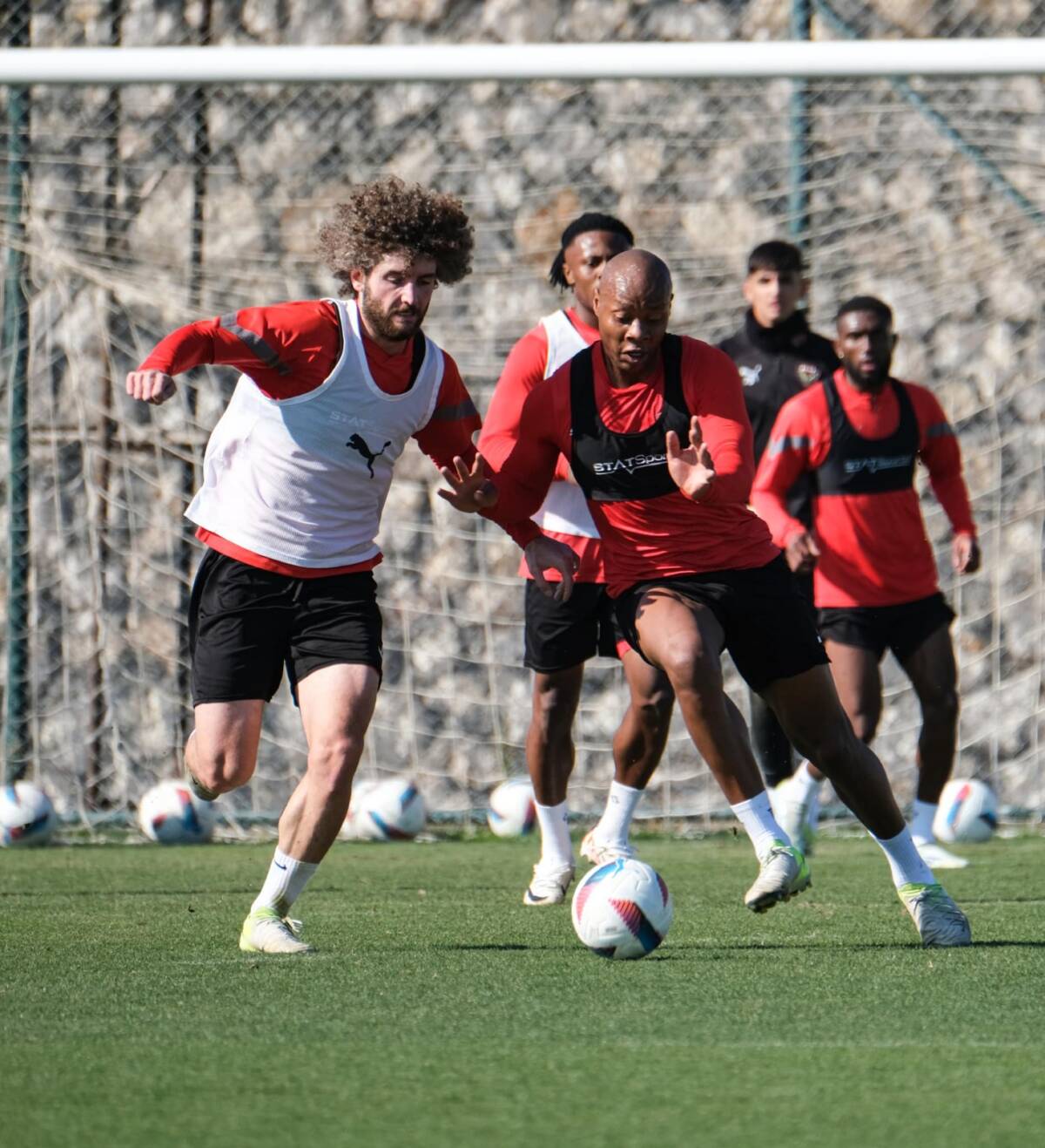 Bordo-beyazlılar, Kasımpaşa maçı sonrası 1 günlük dinlenmenin ardından topbaşı yaptı. Takım dün öğle saatlerinde çalıştı. Mersin-Erdemli atış poligonundaki idmanda 5’e 2 dar alanda top kapma, şut-pas çalışması yapıldı ve çift kale maçı oynandı