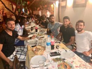Hatayspor Kulübü Yönetimi, önceki akşam futbolculara eşleriyle birlikte akşam yemeği verdi. Yemeğe, Kulüp Onur Başkanı Lütfü Savaş ile Kulüp Başkanı Mehmet Maden de katıldı. Pazartesi akşamı gerçekleşen akşam yemeğine tüm futbolcular katılırken, evliler, eşli olarak organizasyona katılım gösterdi.