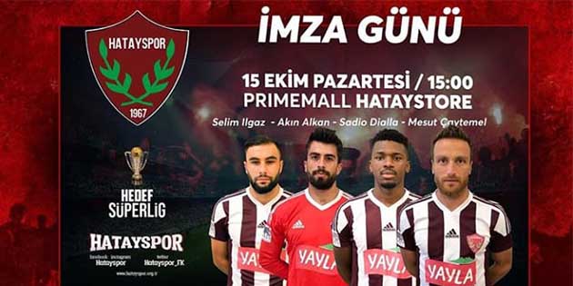 Hatayspor futbolcuları, bugün imza gününe katılıyor. Antakya Palladium AVM merkezindeki Hatayspor Store’deki imza günü saat 15.00’te başlıyor. Burada Hatayspor futbolcuları; Akın, Selim, Tom ile Mesut, taraftarların formalarını imzalayacak, onlarla sohbet edecekler.