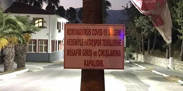 Hatayspor’da art arda yaşanan KOVİD testlerindeki pozitif vakaları sonrası Bordo-Beyazlı ekibin Reyhanlı yolu 2.km’deki tesisleri girişlere kapatıldı. Hatayspor’un Maşuklu tesisleri dezenfekte edildi ve içeriye girişler yasaklandı. Tesis personeli ile futbolcuların ise evlerinde dinlendiği öğrenildi. -Cemil Yıldız-