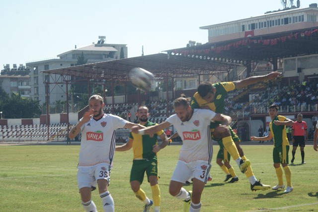 Tribünlerdeki çok az sayıda seyirci önünde oynanan maçta, ilk dakikalarda iki takım da tutuk bir görüntü çizdi. 17.dakikada konuk ekip ilk gol fırsatını yakalayan taraf oldu. Bu dakikada sağdan yapılan ortayı iyi izleyen Serhat, topu kafa ile kaleye gönderdi. Ancak top süzüle süzüle az farkla dışarı çıktı. Hemen 2 dakika sonra konuk ekibin golü geldi. Bu dakikada sağdan korner atışı kullanıldı. Kaleci ve defans seyredince de, Eray vole ile topu ağlara gönderdi ve bu golle Hatay 0-1 yenik duruma düştü, 0-1.