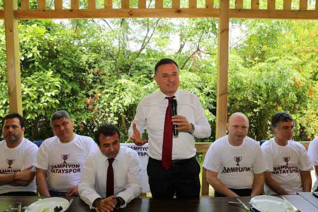 Hatayspor futbolcuları, şampiyonluk sonrasında yöneticilerle Pazar sabah kahvaltısında buluştu. Büyükşehir Belediye Başkanı Doç. Dr. Lütfü Savaş da kahvaltıya katıldı. Hataylıların 51 yıllık şampiyonluk hasretine son veren futbolcularla şampiyonluğu kutlayan Başkan Savaş, Hatay temsilcisinin Süper Lig’e çıkabilmesi için destek ve mücadeleye devam edeceklerini belirterek, “Mutluyuz, gururluyuz. Şampiyonlukta büyük emeği olan ve Hatayspor taraftarına yürekten teşekkür ediyorum. Bu, hepimizin başarısı. Şampiyonluğun tüm Hatay halkına hayırlı uğurlu olmasını diliyor ve takımımıza 1. Lig’de başarılar diliyorum” dedi. Hatayspor’lu futbolcular da bu şampiyonluğu taraftarlarına hediye ettikleri için gururlu olduklarını ifade ettiler.