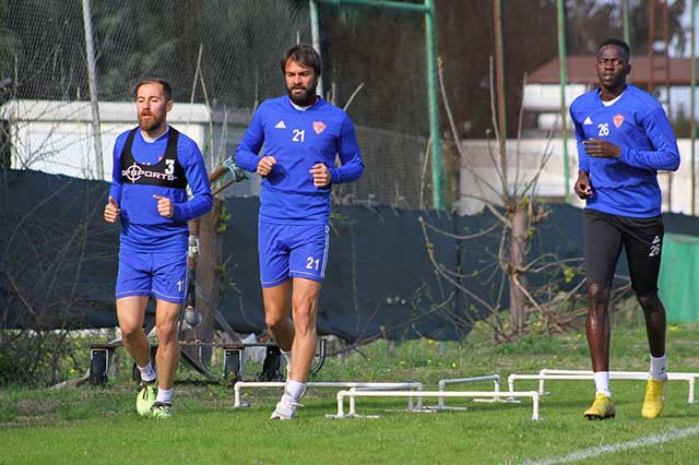 Hatayspor futbolcuları, 4 günlük iznin ardından yeniden topbaşı yaptı. Bordo-Beyazlılar, dün tesislerde iki haftalık aranın ilk çalışmasını gerçekleştirdi. Çarşamba günü tesislerde gerçekleşen çalışmada, futbolcular, yenileme çalışması ile 5’e 2 çalışması gerçekleştirirken, kaleciler ise özel çalıştı. Kaleci antrenörü, file bekçilerine “ayakla tenis” oynattı. -Cemil Yıldız-