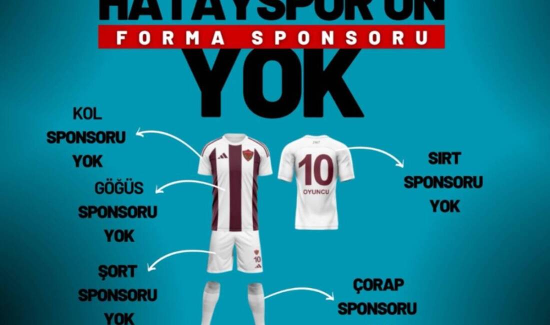 Hem Süper Lig’den 1. Lig’e düşmenin hem de ekonomik zorlukların etkisiyle sponsor bulmakta zorlanan Hatayspor’un formaları, şu an itibarıyla tamamen sponsorsuz. Kol, göğüs, sırt, şort ve çorap dahil olmak üzere formanın hiçbir yerinde sponsor logosu yer almıyor.