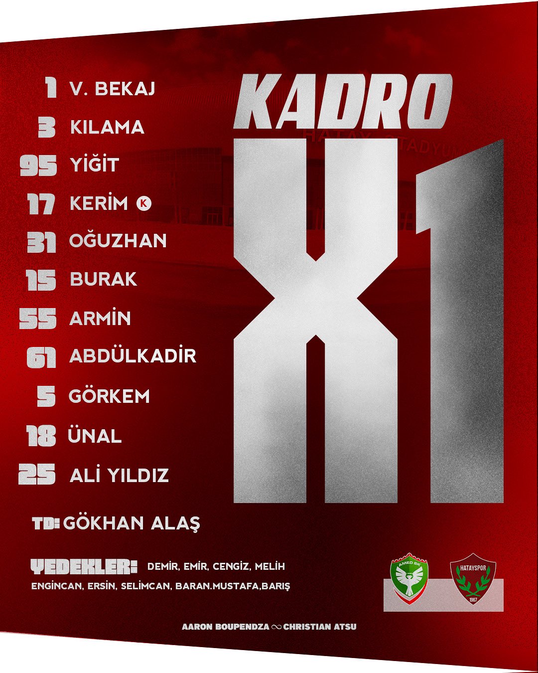 Trendyol 1. Lig’in 13. haftasında Amedspor, bugün Hatayspor’u Diyarbakır Stadyumu’nda ağırlıyor. Saat 19.00’da başlayacak mücadele, her iki takım için de kritik puanlar taşıyor.