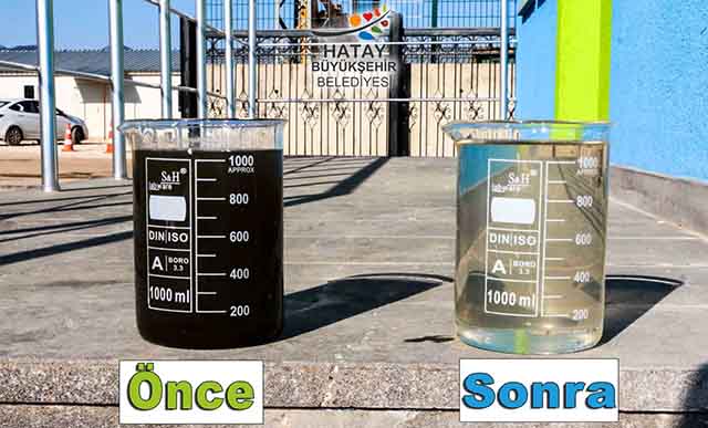 HATSU yetkilileri, arıtma tesislerinde işlem gören atık suların ne denli arıtılıp doğaya bırakıldığını, “önce ve sonra” şeklinde hazırlanmış “habere ek fotoğraflarla” kamuoyunun bilgisine sundu. -Selvi Günay