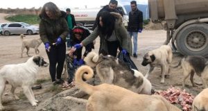 “Bu bölgede yaklaşık 90 köpek bulunuyor. Bizler, haftada bir veya iki kez kendi aramızda para toplayarak ya da hayvanseverlerden mama desteği alarak köpekleri besliyoruz. Bizi görünce çok seviniyorlar, mutlu oluyorlar. Bu konuda halkımızın bilinçlenmesini istiyoruz. İnsanlarımız, günlük bir kahve parasını mama desteği olarak bağışlayabilirler. Burada, başka şehirlerden gelen arkadaşlarımız da var. Biz, kendi imkanlarımızla elimizden geleni yapıyoruz, ama halkımızın bu konuda bilinçlenmesi gerek.”