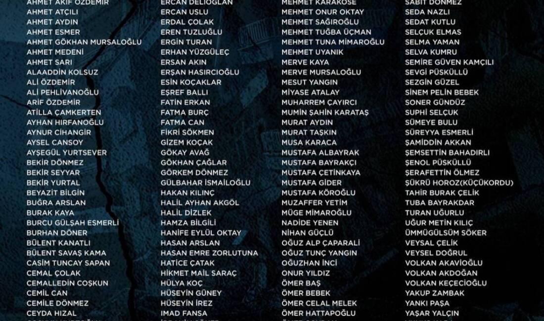 SÜREYYA ESMERLİ ŞAMİDDİN AKKAN ŞEMSETTİN BAHADIRLI ŞENOL PÜSKÜLLÜ ŞERAFETTİN ÖLMEZ ŞÜKRÜ HOROZ(KÜÇÜKORDU) TAHİR BURAK ÇELİK TUBA BAYRAKDAR TURAN UĞURLU UĞUR METİN KILIÇ ÜMMÜGÜLSÜM SÖKER VEYSAL ÇELİK VEYSEL DOĞRUL