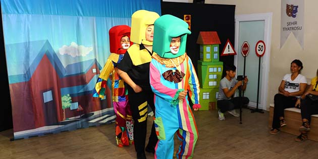 Hatay Büyükşehir Belediyesi Şehir Tiyatrosu “Çıtır ile Pıtır Trafikte” adlı eğitici ve öğretici çocuk oyununu, minikler keyifle, beğeniyle izledi. HBB Şehir Tiyatrosu, mutfağında özenle hazırlayarak sahnelediği eğitici ve öğretici oyunlarla, geleceğimizin teminatı olan çocukların hem eğitimine hem de bilinçli olarak yetişmelerine de eğlenceli bir şekilde katkı sağlıyor.